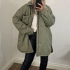 Chaqueta de algodón de gran tamaño para Mujer, abrigo largo Vintage verde, holgado, liso, otoño e invierno, 2021
