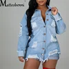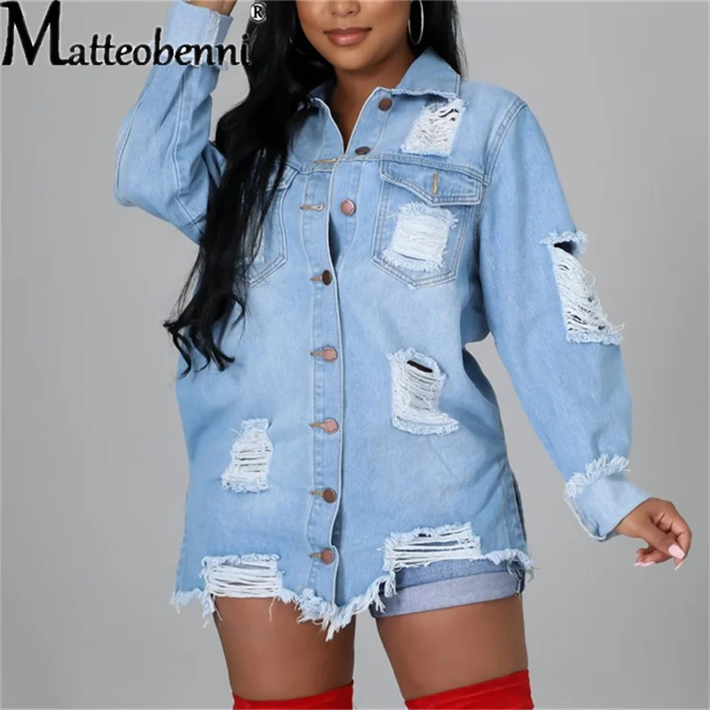 Chaqueta vaquera rasgada para mujer, abrigo informal de manga larga lavado, tendencia de moda, primavera y verano, 2022