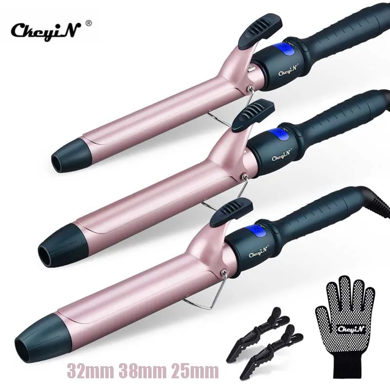 CkeyiN de pelo Rizador profesional, varita de turmalina de cerámica, barril para rizar el cabello, 32mm, 38mm, 25mm, con guantes de horquilla, herramienta de estilismo
