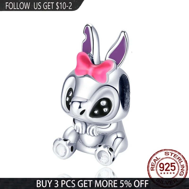 Abalorios de plata esterlina 2021 para mujer, accesorio con bonito lazo de conejo, compatible con pulsera Pandora Original y fabricación de brazaletes, regalo de joyería artesanal, novedad de 925