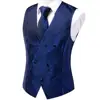 Chalecos y corbata de seda para hombre, vestidos formales de negocios, chaleco delgado de 4 piezas, gemelos de pañuelo para traje, chaleco Floral de Cachemira azul