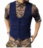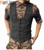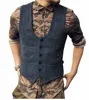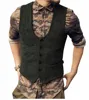 Chaleco informal de algodón para hombre, traje de lana de Tweed de un solo pecho, espiga, marrón, negocios, novio