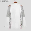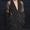 INCERUN Chaqueta de malla con manga larga para hombre, traje informal con doble botonadura bordada, ropa de calle para fiesta, 2021