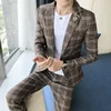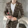 Traje de dos piezas ajustado para hombre, chaqueta sin aberturas, estilo coreano, primavera y otoño, novedad de 2021