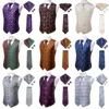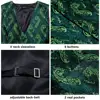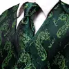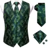 Hi Tie corbata de seda para hombre, chaleco tejido con estampado Floral verde, conjunto de mancuernas cuadradas de bolsillo, conjunto de vestido ceñido en la cintura para negocios y boda, 4 Uds.