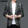 Chaqueta a cuadros para hombre, traje informal de lujo, de alta calidad, a la moda, ajustado, para fiesta