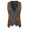 Chaleco de satén para hombre, traje de empalme con cuello en V, una hilera de espiga, ajustado, para negocios formales, ropa de ocio