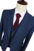 Traje de lana personalizada para hombre, traje Retro de 3 piezas con estampado de espiga azul, solapa de muesca, abrigo, pantalones, chaleco y corbata, 2021