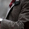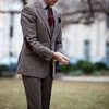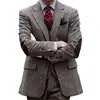 Traje de Tweed para hombre, esmoquin con solapa y muescas de color marrón, para invierno, 3 piezas