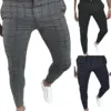 Pantalones pitillo a cuadros para hombre, pantalón informal, Formal, ajustado, para oficina, boda y negocios