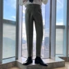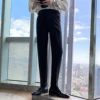 Pantalones de vestir de negocios para hombre, traje ajustado informal británico de cintura alta, ropa de calle para boda, Color sólido, otoño