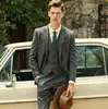 Traje de 3 piezas para hombre, chaqueta de un botón de espiga de Tweed, Blazer de esmoquin para novio de boda + Pantalones + chaleco