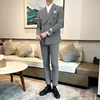 Conjunto de 2 piezas de pata de gallo para hombre, traje de boda con doble botonadura, traje informal de negocios, trajes ajustados para hombres, Blazer Formal a medida, pantalón