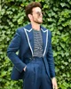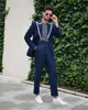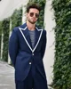 Conjunto de traje de 2 piezas para hombre, traje Formal ajustado, Blazer + pantalón, con solapa blanca hecha a medida, 2 botones, para baile de graduación, Color Azul Marino
