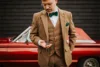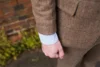 Trajes de lana de 3 pliegues para hombre, Blazer Formal hecho a medida, chaleco, pantalón, ropa de diario a cuadros marrón, conjuntos de traje informal para fiesta de graduación