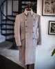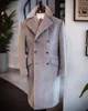 Traje de color crema para hombre, de invierno abrigo largo, Blazer de doble botonadura para fiesta de graduación, chaqueta hecha a medida, traje para hombre