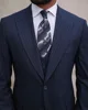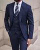 Conjunto de trajes de 3 pliegues para hombre, Blazer Formal a rayas de color azul marino, traje hecho a medida, chaleco, pantalón, Tuexdos de boda, ropa masculina de alta calidad