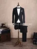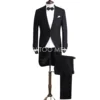 Royal Caballero traje clásico negro de manga larga para hombre, traje de corte ajustado, Blazer + chaleco + pantalón/ropa de novio de boda, 3 piezas