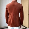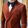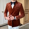 Traje de estilo británico para hombre, chaqueta de terciopelo marrón con solapa de pico, traje de doble botonadura, Blazer ajustado para boda, fiesta y cena, 2022