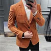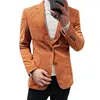Chaqueta de traje de pana naranja para hombre, Blazer Retro con solapa de muesca, de un solo pecho, elegante, a la moda, para fiesta, ropa informal ajustada