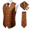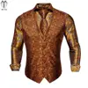 Hi tie Conjunto de camisas y chalecos de seda para hombre, conjunto de camisa Jacquard naranja, corbata de bolsillo, gemelos cuadrados para hombre, boda y negocios