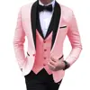 Chaqueta rosa y pantalones negros, 3 piezas, chaleco hecho a medida, Blazer de solapa de Chal, conjuntos de trajes de boda, abrigo + Pantalones + chaleco