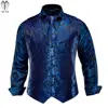 Hi tie Conjunto de camisas y chalecos de seda para hombre, conjunto de Jacquard azul marino Floral, chaleco, camisa, cuello, pañuelo, gemelos para hombres, boda, negocios