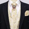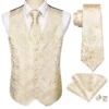 Chaleco Floral Beige para hombre, traje Delgado, chaleco de seda, conjunto de corbata, pañuelo, gemelos, chaleco Formal para negocios