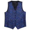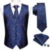 Chaleco Floral azul para hombre, traje ajustado, chaleco de seda, conjunto de corbata, pañuelo, gemelos, chaleco Formal para negocios