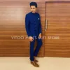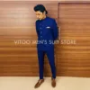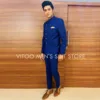 Traje de estilo árabe indio para hombre, traje ajustado de 2 piezas, abrigo y pantalones de cuello levantado, ropa Formal de novio para boda, color azul real