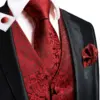 Chaleco de seda de alta corbata para hombre, conjunto de alfileres de cuello dorado para vestido, traje de boda, corbata de Cachemira roja