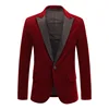Chaqueta ajustada de terciopelo para Hombre, traje de primavera, color rojo vino y negro, a la moda, para novio y boda, 2021