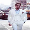 Traje blanco con solapa con muescas para hombre, de alta calidad y boda traje de novio, traje de una sola botonadura de 4 piezas (abrigo + Pantalones + chaleco + corbata) 2021
