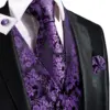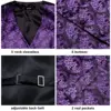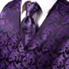 Hi Tie Chaleco de seda para hombre, conjunto de alfileres con cuello dorado, ropa de vestir, traje de boda, púrpura, Floral