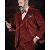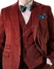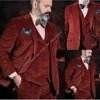 Conjuntos de trajes de moda para hombre, chaqueta con muesca de pana burdeos, pantalones, chaleco Formal, Blazer de boda, 3 piezas, 2022