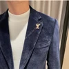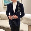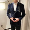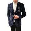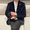 Chaqueta gruesa de pana azul marino para hombre, traje masculino de 2 piezas, color negro, para boda, noche y fiesta