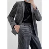 Abrigo de solapa de 2 piezas para hombre, Blazer de terciopelo gris hecho a medida, conjuntos de trajes cálidos para hombre, traje de novio, ropa de fiesta de boda, chaqueta + Pantalones