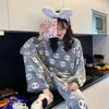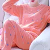 Pijamas coreanos de franela con dibujos animados para mujer, ropa de dormir cálida de terciopelo con cuello redondo, invierno, 2021