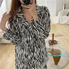Conjunto de pijamas con pantalones para mujer, ropa de dormir Sexy con rayas de cebra, informal, con bolsillo, para todas las estaciones, Primavera e invierno, 2022
