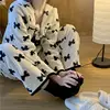 QWEEK Pijama de terciopelo con lazo para mujer, traje de casa para invierno, Color liso, blanco, rosa, gris, azul