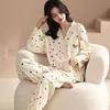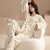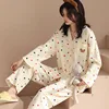 Conjunto de pijamas de algodón para mujer, cárdigan de manga larga con cuello en V y botones, ropa holgada y cómoda para el hogar, primavera y otoño