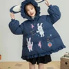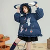 Abrigo de algodón con capucha para mujer, chaqueta de talla grande con orejas de conejo, ropa de calle, Tops para mujer