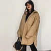 Chaqueta de algodón de gran tamaño para mujer, abrigo largo Vintage verde, Parka ligera Lisa holgada, ropa de otoño e invierno, 2021