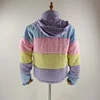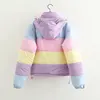 Plumífero grueso con contraste de arcoíris para mujer, chaqueta holgada acolchada, abrigo de invierno para estudiante, Parka cálida para Universidad para mujer