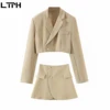 LTPH conjuntos vintage sencillos para mujer, Blazer de solapa de temperamento a la moda, cintura alta, minifalda ajustada, trajes de falda, novedad de otoño 2020