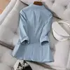 Chaqueta elegante para mujer, Blazer ajustado con un solo botón, color azul y negro, para primavera y verano, 2021