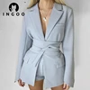 INGOO Chaqueta de manga larga con cordones para mujer, traje elegante de oficina, informal, a la moda, ropa de calle