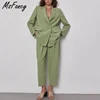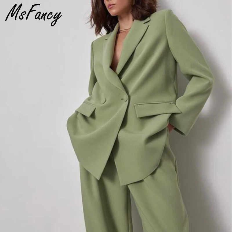 Msfancy Chaqueta elegante de doble botonadura para mujer, trajes verdes de cintura alta hasta el tobillo, pantalones, conjuntos de 2 piezas para mujer 2021