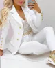 Conjunto de chaqueta y pantalones formales para mujer, conjunto de dos piezas con estampado de cadena, abrigo y pantalones de oficina, Otoño, 2021
