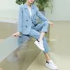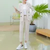 Chaqueta de trabajo con doble botonadura para mujer, trajes elegantes de negocios, conjuntos de pantalones OL, chaquetas delgadas y pantalones, trajes de dos piezas rosas
